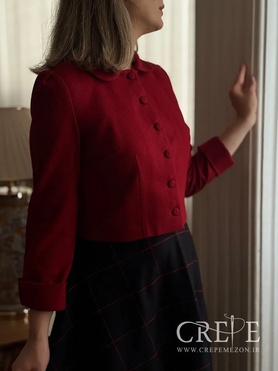 کت تک کشمیر خاتون یک کت زنانه زیبا که از جنس پارچه اعلا کشمیر می باشد و در سایزبندی 38 تا 44 موجود است. این کت تک زنانه انتخاب محبوبی برای جشن یلدا و نوروز می باشد. همانطور که می دانید این کت زنانه از جنس کشمیر با کیفیت بسیار بالاست و از لطافت ویژهای برخوردار است. این کت به رنگ قرمز زنده و جذاب طراحی شده است که توجه هر نگاهی را به خود جلب میکند. آستینهای این کت سه ربع هستند که به زیبایی به تنوع و استایل آن افزوده و امکان نمایش مچ دست را فراهم میکند. یقه این کت از مدل ب ب (B) طراحی شده که ظاهری شیک و مدرن به آن میبخشد. در قسمت جلو، یک ردیف دکمه از جنس پارچه کت وجود دارد که به هماهنگی و زیبایی بیشتر کت کمک میکند.
